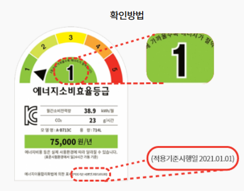 참고하실 점은 에너지소비효율등급 라벨이 둥근 형태일 경우 지원대상이 아니니 참고하시기 바랍니다.