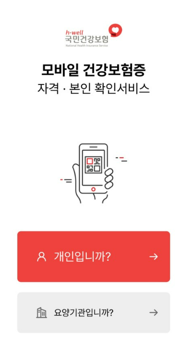 ✅ 모바일 신분증 : 모바일 건강보험증 (실행 후 QR코드 제출)