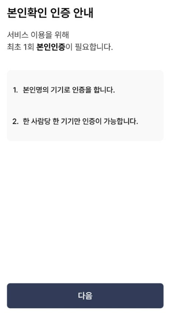 | 전자신분증 | 모바일 건강보험증, 모바일 운전면허증, 주민등록증 확인서비스 등 * 신분증 사본(캡처본, 사진 등 포함), 각종 자격증 등은 전자신분증이 아니므로 본인확인 불가 |