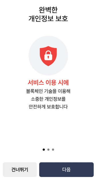2. 모바일 건강보험증에 대한 설명을 확인하실 수 있습니다. 내용을 인지하고 있다면 '건너뛰기'를 선택하시고, 기능 접근 권한 및 정보 수집 약관에 동의 해주세요.