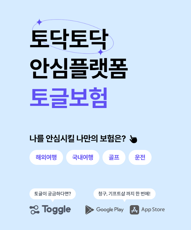 토글보험은 앞서 안내해드린 보험다모아와 유사한 여행자보험 비교 플랫폼입니다.