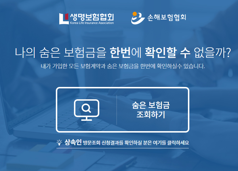 숨은 보험금이 있는지 궁금하신 분! 찾기 귀찮아서 그냥 두고 계신 분들! 모두 아래에서 숨은 보험금을 조회, 신청하여 내 소중한 보험금을 수령하시기 바랍니다.